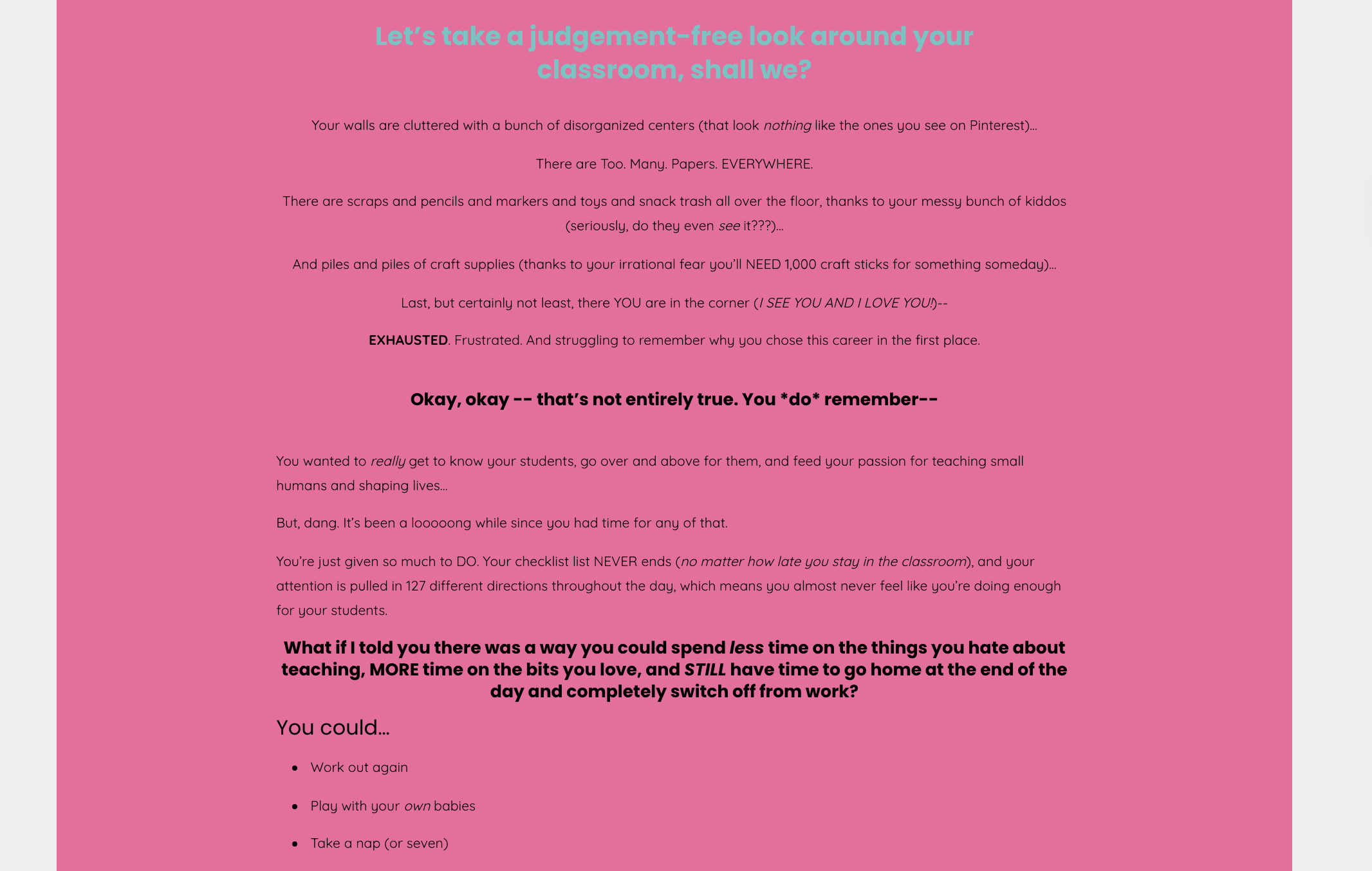 And here’s the best part… once it’s done, it’s done! You don’t have to rewrite it from scratch every time. In fact, we (and our students) use the exact same sales page launch after launch after launch! Isn’t it great to build something once and get it to work for you for years?!