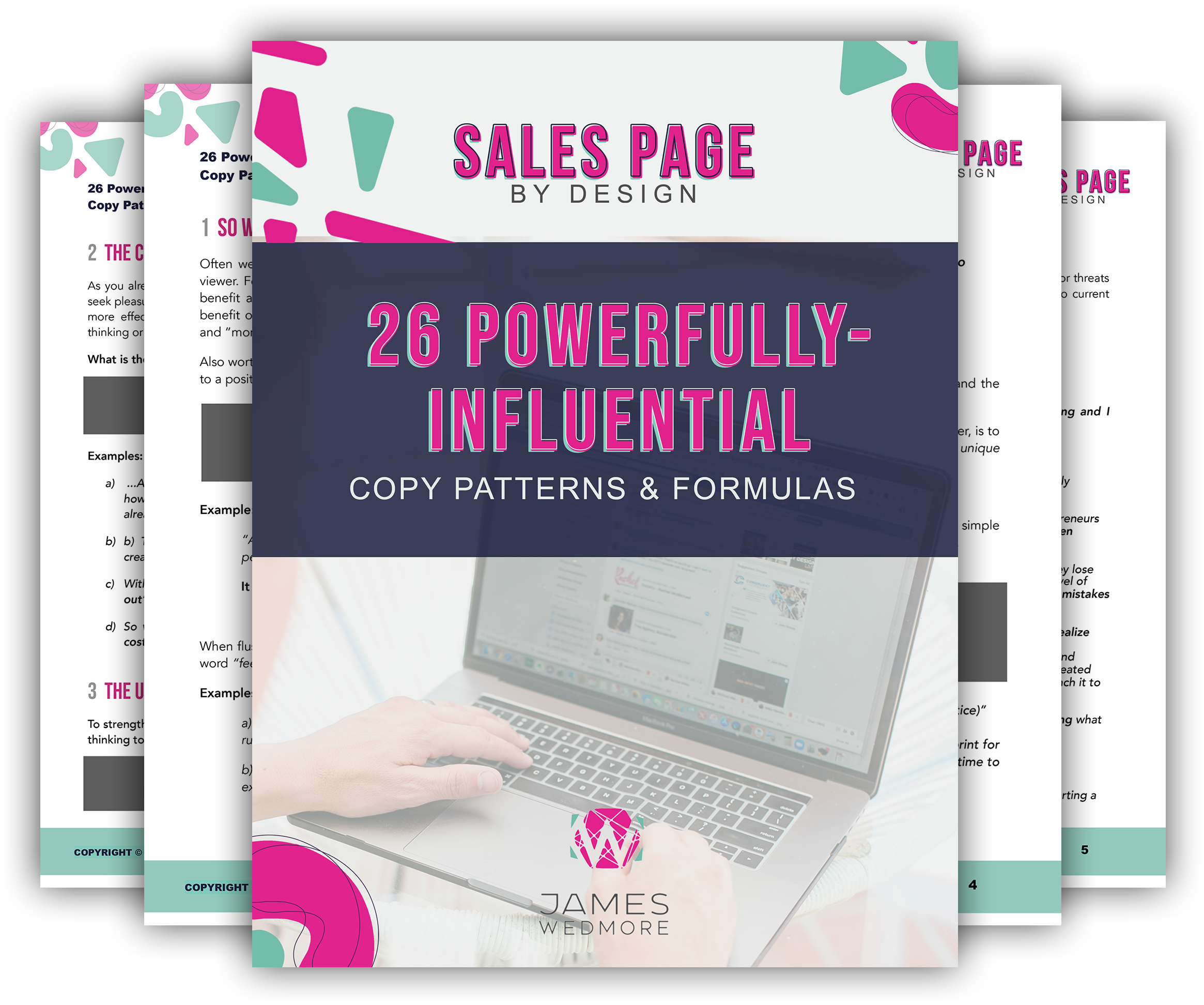 “Did you know you don't actually have to be good at design OR copywriting to have a killer sales page that WORKS? It's true cause James literally talks you through the EXACT words, design, sections, layout, flow and most effective user experience to get your potential customer ripping out their Amex to get whatever it is you're hocking.”